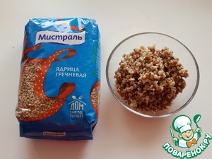 Для пирога понадобится отварная гречка. Я использовала ядрицу гречневую от Мистраль.