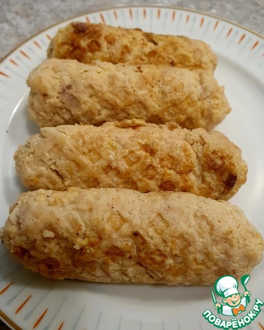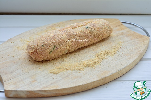 • Сформировать колбаски из фарша на поверхности, обильно пересыпая панировочными сухарями;