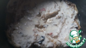 Белые грибы /у меня сырые замороженные белые/ отварить в 300 мл. подсоленной воды. Процедить, небольшое количество отвара вылить в чашу мультиварки. Поставить Мультиварку на режим "тушение" на 30 минут.