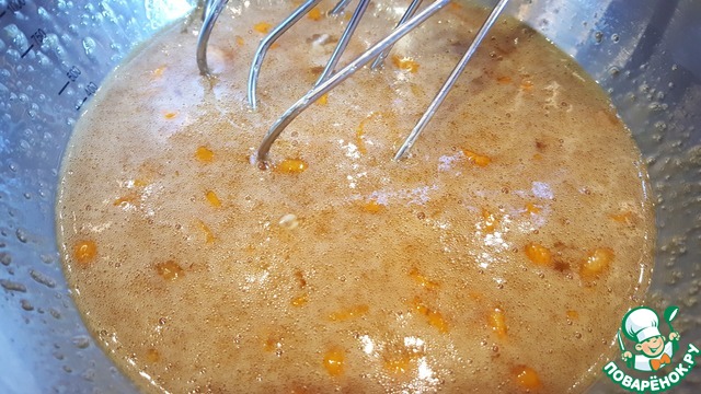 Добавить сок и мягкое масло. На такой же малой скорости перемешать. Я использовала для бисквита сок и цедру узбекского лимона. Он очень сочный, оранжевый и менее кислый, чем классический жёлтый лимон.