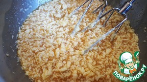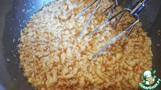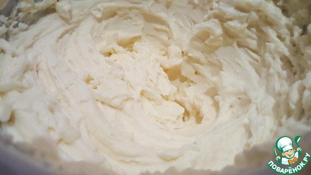 Крем. С рикоттой крем получается очень нежным, но немного жидковатым, поэтому можно добавить закрепитель сливок. Если Вы замените рикотту на маскарпоне, то загуститель Вам не понадобится. Взбиваем на небольших оборотах рикотту, добавляем постепенно сливки. Взбиваем. Добавляем сахарную пудру. Увеличиваем обороты. В конце добавляем амеретто.