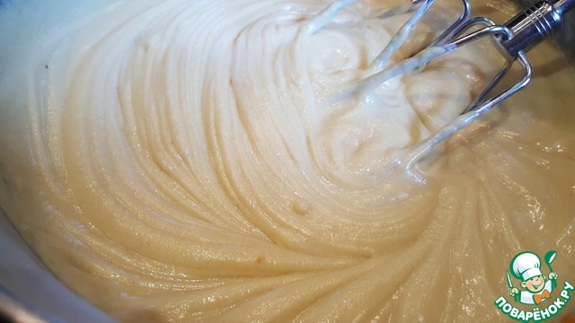 Добавить просеянную муку с разрыхлителем. На такой же скорости замесить тесто. Включить прогрев духовки 180*.