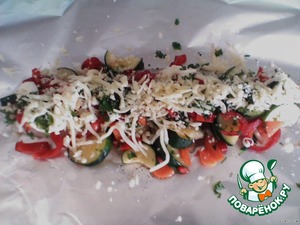 Вкусная рыбка с кабачками, болгарским перцем, морковью, сыром.