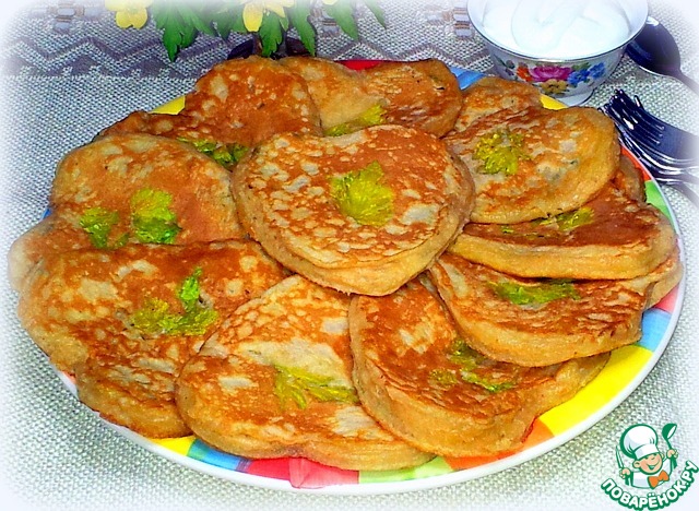 Рецепт «Оладьи с сельдереем и кедровыми орешками»:
