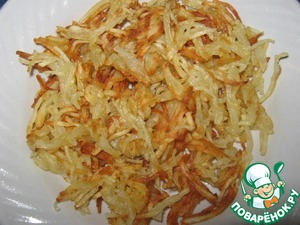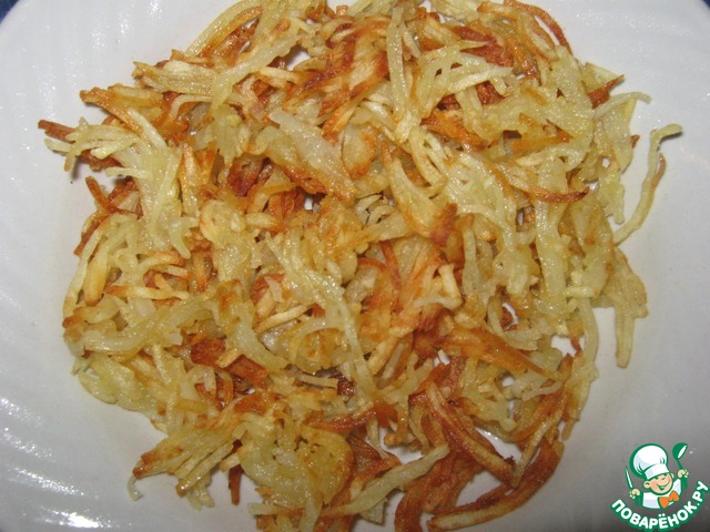Картофель почистить, помыть, натереть на корейской тёрке, обжарить на масле.
