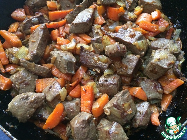 Добавить нарезанную на кусочки печень