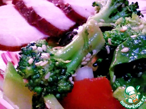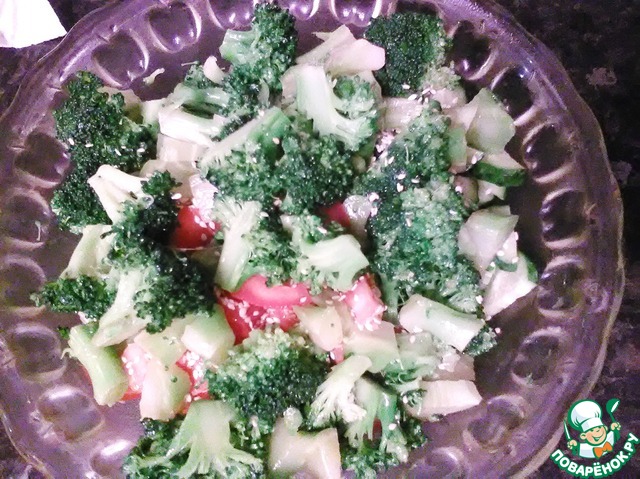 Брокколи остыл и приобрел очень интересный вкус и запахю Добавляем в салатницу