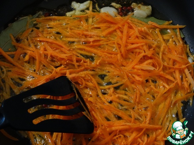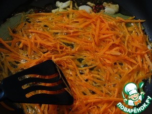 Выкладываем морковь, быстро перемешиваем и снимаем с плиты. Морковь не жарим!