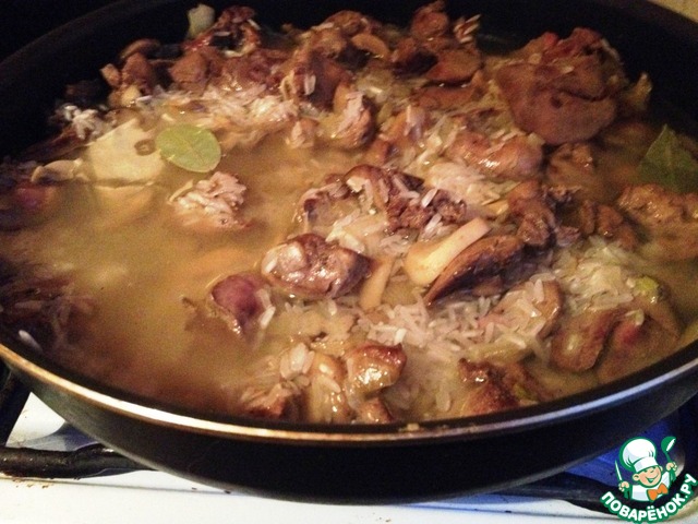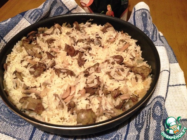 Ароматное, сытное блюдо из риса. Готовится по технологии плова. Хотя есть плов с печенью у восточных народов, но без грибов))) Блюдо нам очень понравилось, готовила уже дважды. Рецепт нашла на другом сайте. Автору огромное спасибо за рецепт!