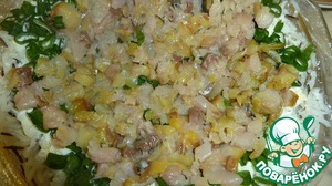 • 2-ой слой-яйца, почищенные и порезанные кубиками.