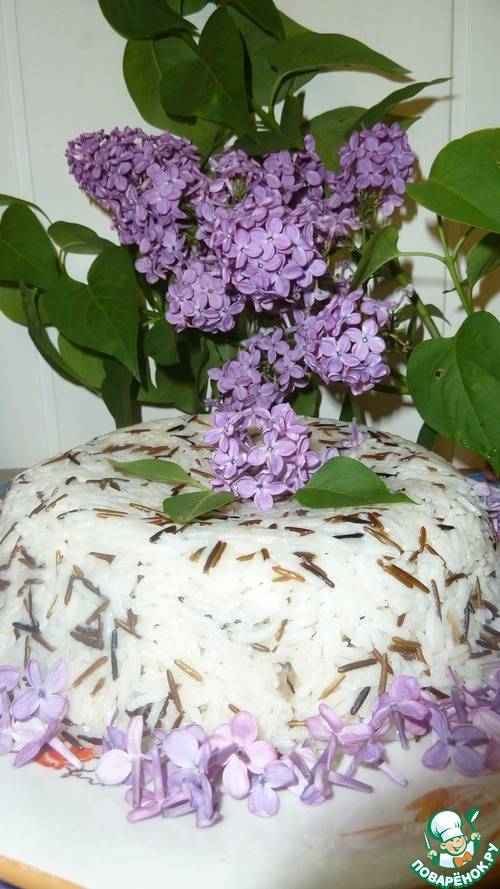 • А можно и украсить огурцами или укропом. Но так как на дворе май, то для красоты использовала цветки и листики прекрасной сирени.
