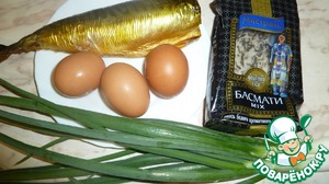 Спасибо за вопрос.Сначала не поняла о чём вы,потом увидела ошибку-исправила.Надо 150-200гр сырого риса(если у вас салатница меньше,значит и риса чуть меньше и наоборот).Рыба у меня холодного копчения.