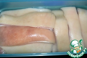 Уложить сало неплотно, шкуркой вверх, в подходящую емкость.