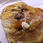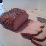 Затем сразу отправьте в разогретую духовку 180С. на 25 минут, если свинина, 15мин. если телятина. Я проверила ножом, сок вытекал прозрачный, значит, мясо готово. Горячим отправьте его в маринад. Я его оставила на ночь, и утром уже готовила бутерброды, но можно оставить и на дольше. Раза 3-4 переворачивала, чтобы равномерно впитался маринад. Подаем холодным, полив маринадом.