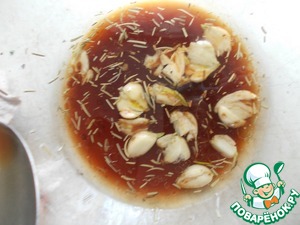 Затем раздавить дольки чеснока и добавить в маринад. Оставить его настояться.