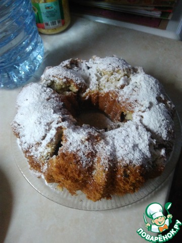 Готовый кекс оставить в форме отдохнуть 10 минут, затем осторожно вынуть из формы. Остывший кекс посыпать сахарной пудрой.
