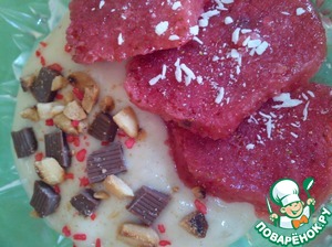 У меня кусочек горького шоколада для себя, а для мужа шоколад, орешки и кокосовая стружка! Отлично подойдёт сюда и какао, и тертый шоколад, и шоколадный соус или паста Нутелла, взбитые сливки. Деткам можно украсить конфетками или мармеладками! Общем, это дело вкуса и фантазии!