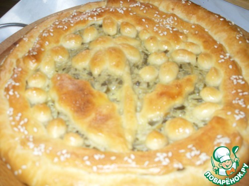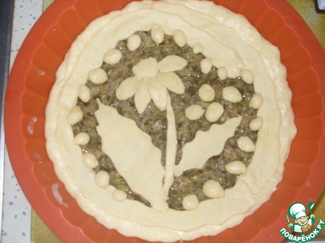 Украшаем верх кто как может!!! Кстати, это тесто, как пластилин, можно лепить все, что душе угодно! Смазываем яйцом или молоком. И в духовочку, разогретую до 200 гр. Где-то на 40-50 мин, через некоторое время можно убавить жар до 180.