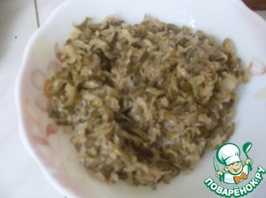 Делаем начинку. Огурцы трем на терке. Бабушка рубила их сечкой в корытце, все было по-старинке! Отжимаем от сока. Смотрим, может еще надо будет огурчиков потереть. Отправляем их на сковородку с маслом и обжариваем хорошенько, чтоб хруста уже практически не ощущалось. Лучок режем кубиком и отдельно тоже обжариваем. Потом смешиваем с огурчиками. Начинка готова!