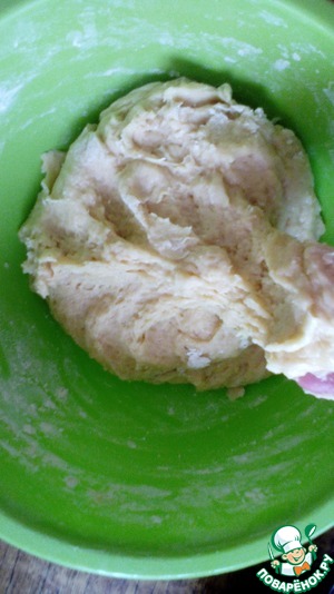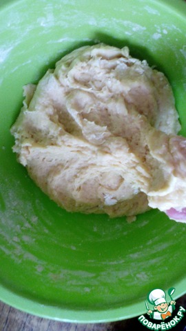Сверху я всегда посыпаю липкое тесто мукой, как бы припудривая слегка, чтобы было удобнее работать с ним.
