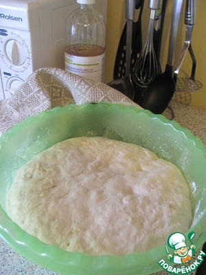 Поставить снова в тёплое место и пусть киснет, пока мы готовим начинку. Вот оно в готовом виде. -