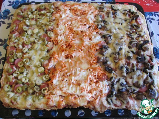 Ну, и подумаешь, что куча пицц на сайте. "От серого волчка", ведь, ещё не было.))) Неее, худенькая, аскетичная пицца - это не для меня. Чё там есть-то?)) Моё - практически пирог. Толстый, большой, жирненький.))) На этот раз решила сделать пиццу "три в одном".