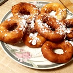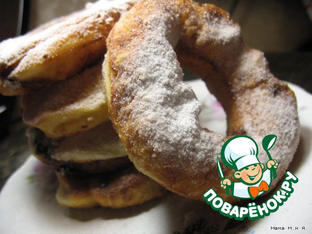 Фритюр не раскаляем - я жарила на 2-2.5 (у меня деления идут до 3). Кидаем во фритюр вырезанные колечки (из одной порции получилось штук 20), жарим с 2 сторон.