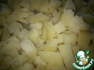 Яйца сварить вкрутую, почистить, нарезать кубиками.