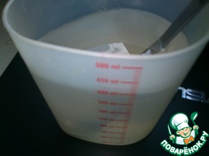 В 450 мл воды растворить 3 столовые ложки соли. Внимание! не берем соль йодированную. Только обычную столовую соль. Только так вкус окрошки будет настоящим. Важно дождаться, когда выпадет осадок, при добавлении осадок в окрошку попасть не должен.