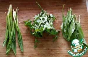 • Черемшу, листья одуванчика и щавель нарежьте мелко.