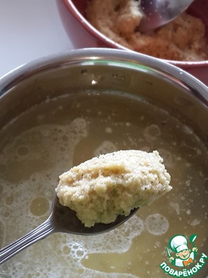 • Из манного теста с помощью ложки формируйте клёцки и опускайте в кипящий бульон, варите 1-2 минуты.