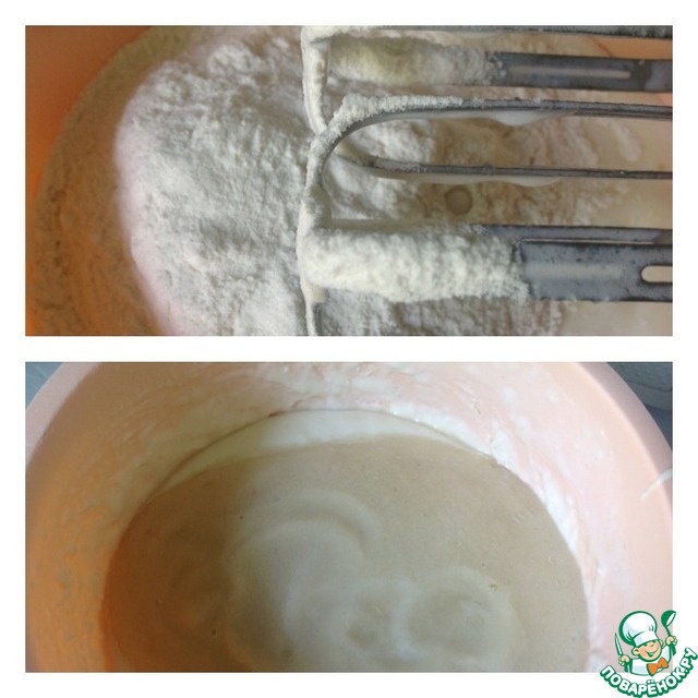 • Добавить муку и взбить. Груши очистить от кожицы и сердцевины. Пюрировать их при помощи блендера и добавить к тесту. Лопаткой тщательно перемешать тесто.