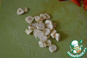 В большой сковороде (казане) разогреть растительное масло, обжарить перец 2 минуты.