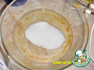 • Отделить желтки от белков, взбить белки с сах. песком.