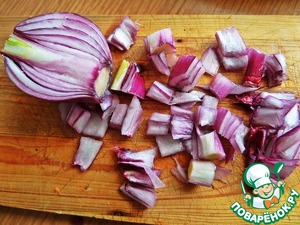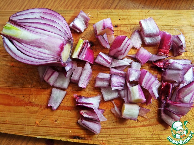 Лук (не обязательно красный) нарезать мелко.