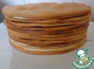 Совет: Пока готовится крем, остывшие коржи завернуть в бумагу или пленку.