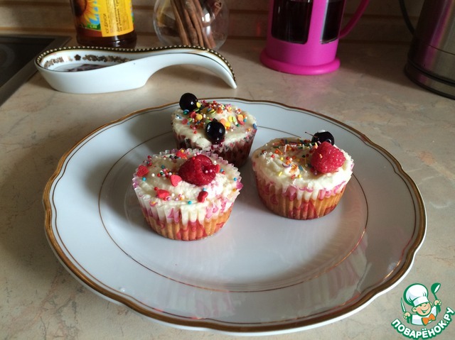 • Выпекаем кексы минут 25-30 при 180 градусах. Достаем кексы, даем им остыть и украшаем по своему вкусу.