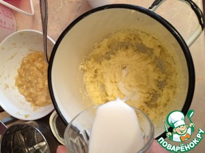 • Добавляем ванильный сахар, соль и вливаем молоко. Все перемешиваем.