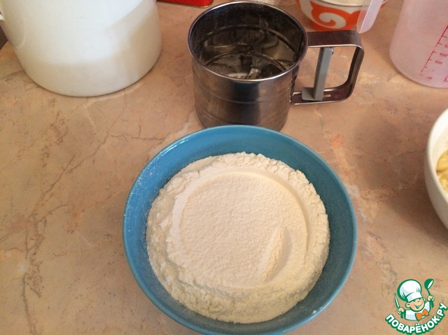 • Отдельно просеиваем муку, добавляем разрыхлитель.