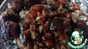 В это время займемся овощами. Баклажаны, черешковый сельдерей и сладкий перец порезать тонкими ломтиками, помидор и репчатый лук кубиками и обжарить на растительном масле. Посолить и приправить прованскими травами.