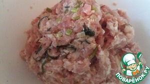 Свиной фарш посолить, поперчить добавить обжаренный лук и приправу "Прованские травы".