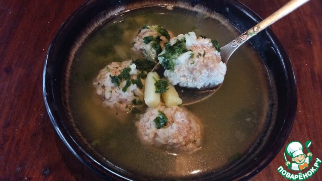 Рецепт «Шпинатно-щавелевый суп с фрикадельками»:
