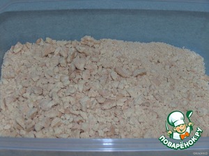 Смешать печенье с маслом и имбирем. Уложить в форму для выпечки.