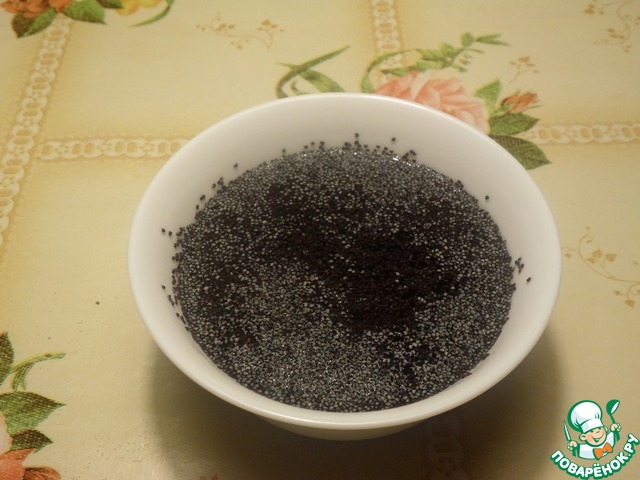 Мак высыпаем в чашечку и заливаем кипящей водой. Оставляем на 10 минут. Процеживаем через сито.