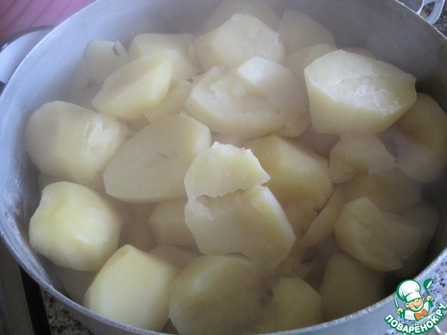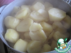 • Картофель отвариваем, сливаем полностью воду, разминаем.