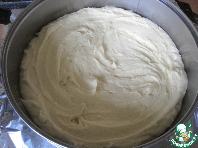 • Готовим заварное тесто. Воду с маслом и солью доводим до кипения, добавляем муку и завариваем тесто. Немного охлаждаем, добавляем яйца.