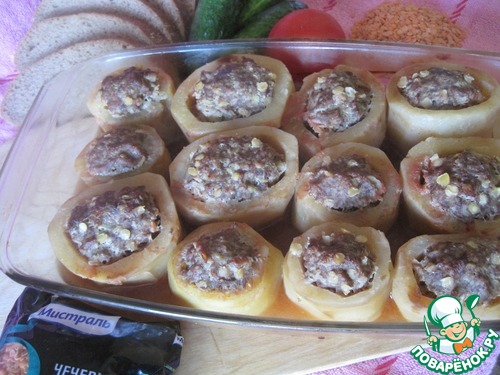 Фаршированный картофель необычен на вкус и на вид и всегда вызывает бурю положительных эмоций у моих гостей. Отличное сочетание мясного фарша с чечевицей и картофелем. Особенностью моего фарширования является то, что я использую уже отварной картофель, что позволяет легко удалить сердцевину.