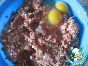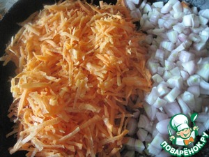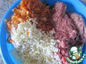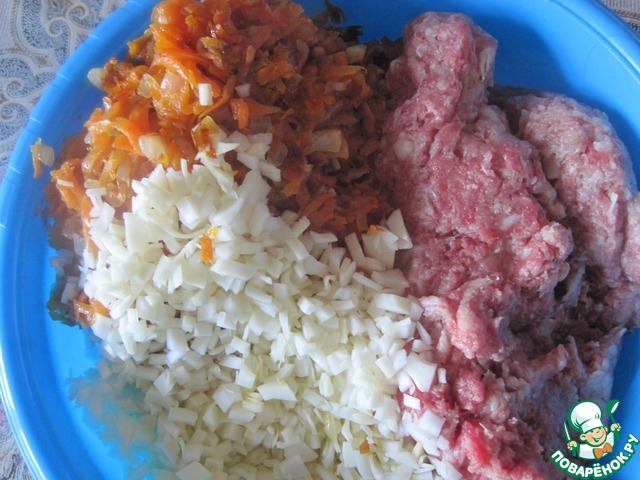 Фарш соединяем с мелко нарезанной капустой и обжаренными луком и морковью.