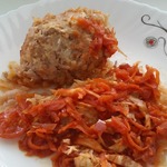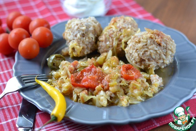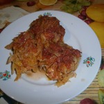 Из минусов: продукты не объединились - капуста отдельно, "ежики" отдельно, соус с луком, морковью и томатами - отдельно. Судя по предыдущим фото приготовивших - не у одной у меня продукты не "подружились".