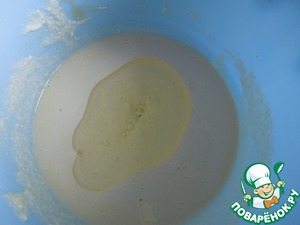 Затем добавить молоко и растительное масло. Хорошо перемешать.